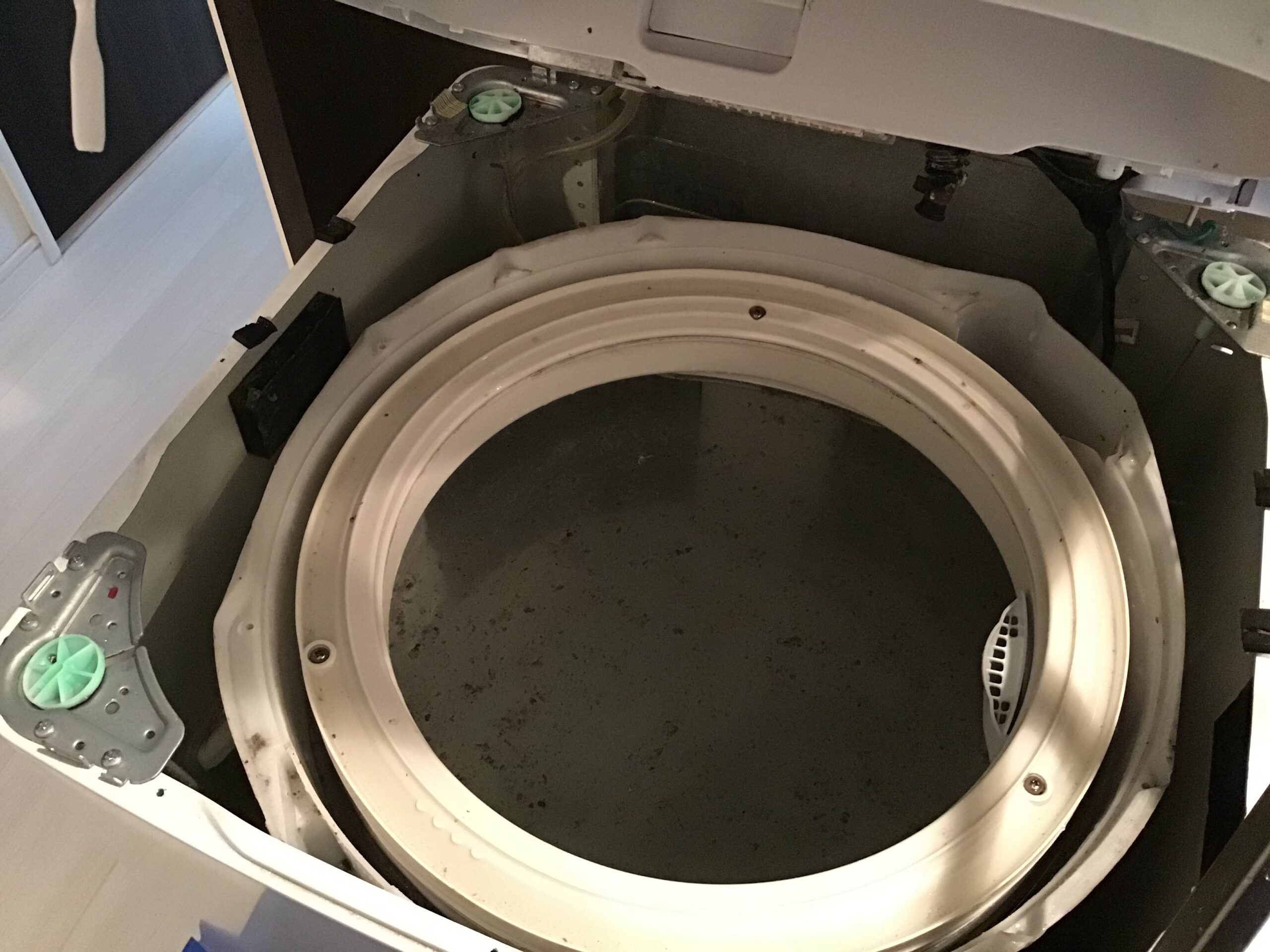今回は分解しないで除菌クリーニングなので、洗濯槽を引っ張り上げません。